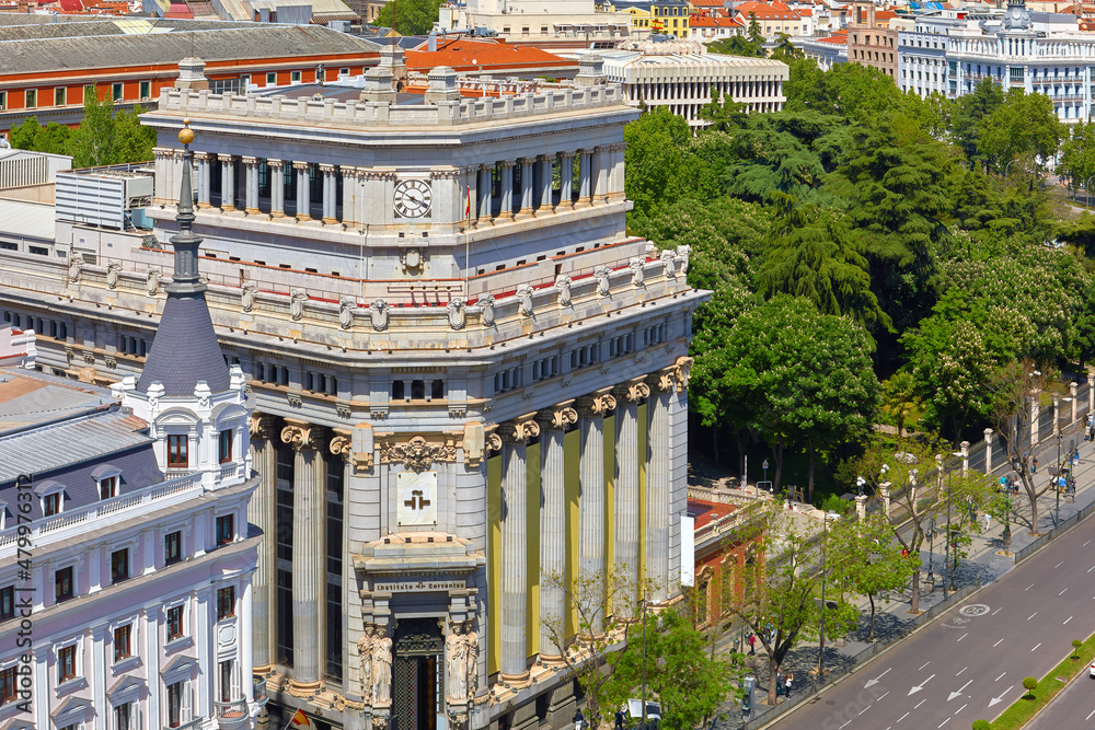 Madrid, Spain. Cervantes Institute headquarters. Building of worldwide non-profit organization created by the Spanish government. Summer city.