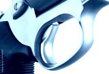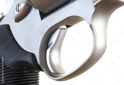 Triggerguard and trigger on a large steel revolver isolated on a white background