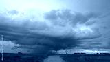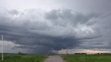 Dramatic Sky With Rain Clouds On Horizon Above Rural Landscape Country Road Through Field. Agricultural And Weather Forecast Concept. Time Lapse, Timelapse, Time-lapse 4K View Blue Cloudy Rainy Sky