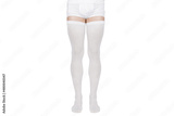 Compression Hosiery for surgery isolated on white. Medical stockings, tights for varicose veins therapy. Embolism deterrent hose or anti-embolism stockings.