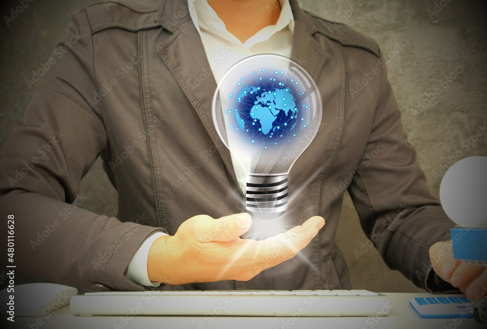 Innovation. Concept fresh idea concept with innovation and inspiration, innovative technology in science and communication concept, hands holding light bulb