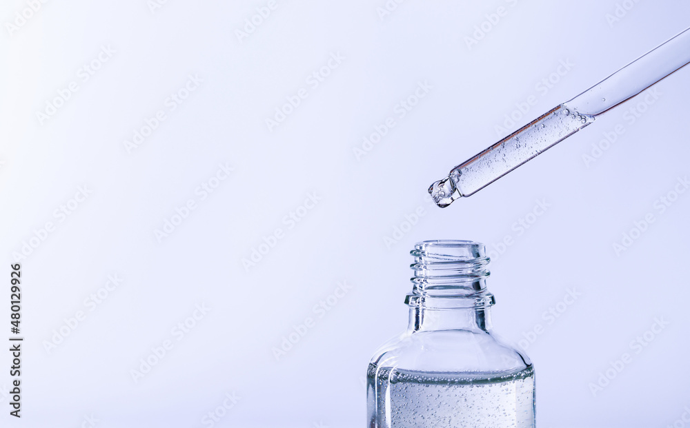 bottle of serum with a pipette on a light background