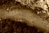 Mountain beautiful river with clear blue water, in the middle of the forest and stones. Natural untouched nature. Top view.