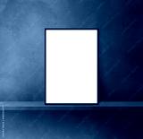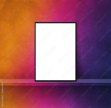 Black picture frame leaning on a rainbow shelf. 3d illustration. Square background