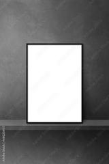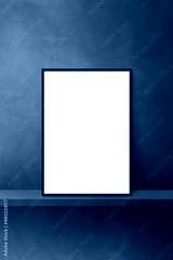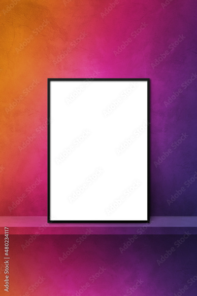 Black picture frame leaning on a rainbow shelf. 3d illustration. Vertical background