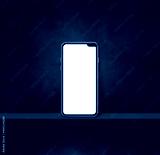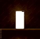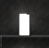 Mobile phone on black wall shelf. Square background