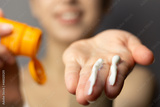 Young woman applying the correct amount of sunscreen for face and neck.
