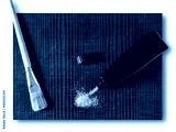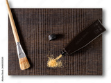 Background with glass powder and brush, on a wooden board