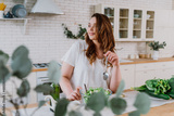 Lifestyle moments of a young woman at home. Woman preparing a salad in the kitchen