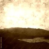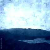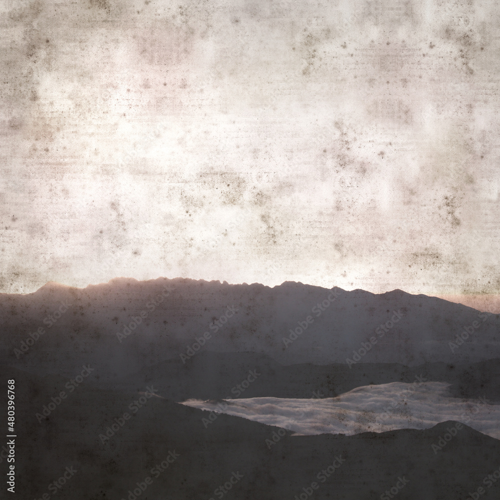 stylish textured old paper square background with landscape of mountainous part of Cantabria in Spain