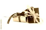 wrapped presents with bows and ribbons