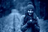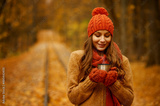 Young woman drinking tea in autumn park