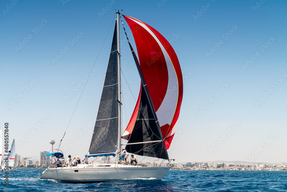Sailboats racing during regatta off the coast of Larnaca. Cyprus