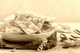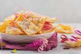 Traditional sweet crisp pastry deep-fried and sprinkled with powdered sugar. Carnival food tradition.