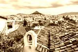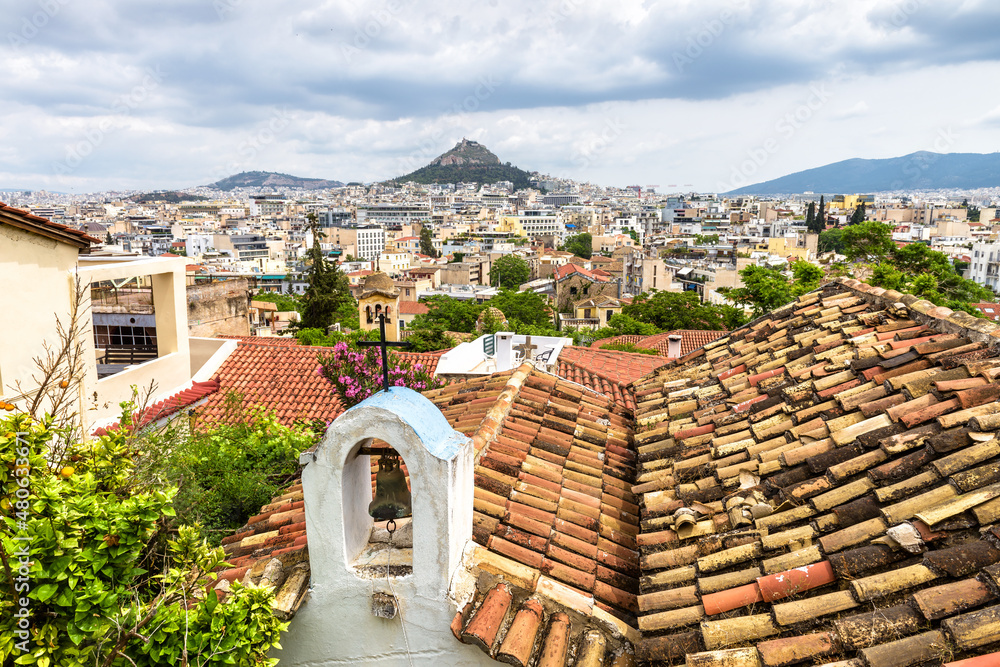Athens view from Plaka district at Acropolis foot, Greece. Urban skyline.