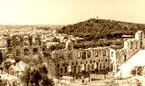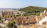 Panorama of Odeon of Herodes Atticus, Athens, Greece. Ancient Greek ruins view from Acropolis..