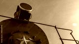 The old spotlight of the Soviet locomotive of the early 20th century. Retro light in front part of train.
