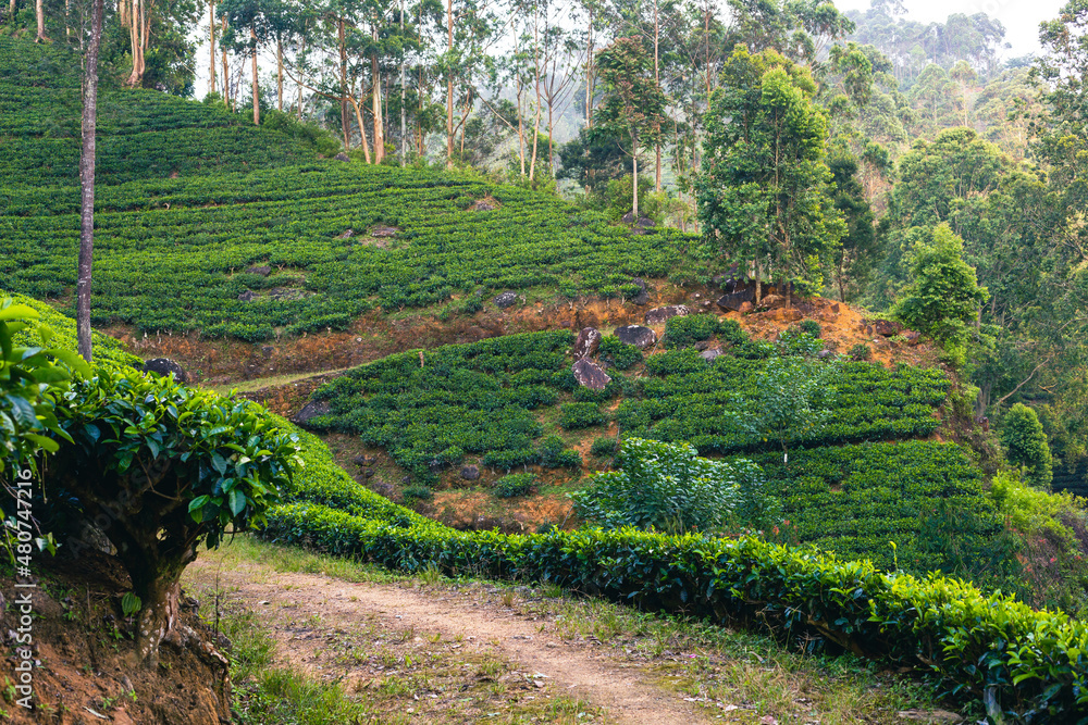 Sri Lanka Tea Plantation. Green Hills Nature Landscape. Nuwara Eliya, Sri Lanka.