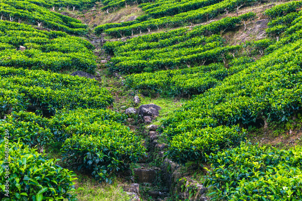 Sri Lanka Tea Plantation. Green Hills Nature Landscape. Nuwara Eliya, Sri Lanka.