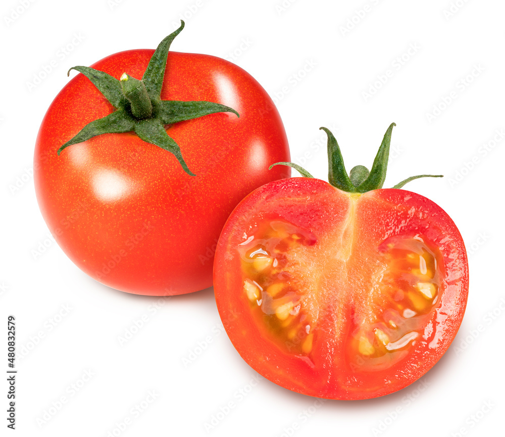 Fresh mini Tomato isolated on the white background, Japanese Tomato on white Background with clipping path.