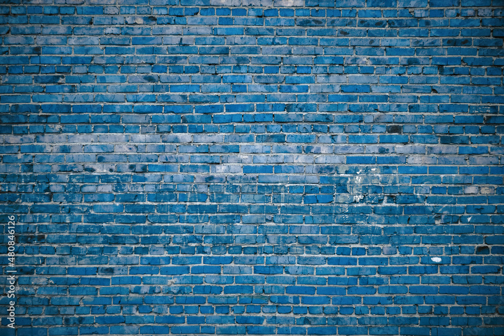 old blue brick wall