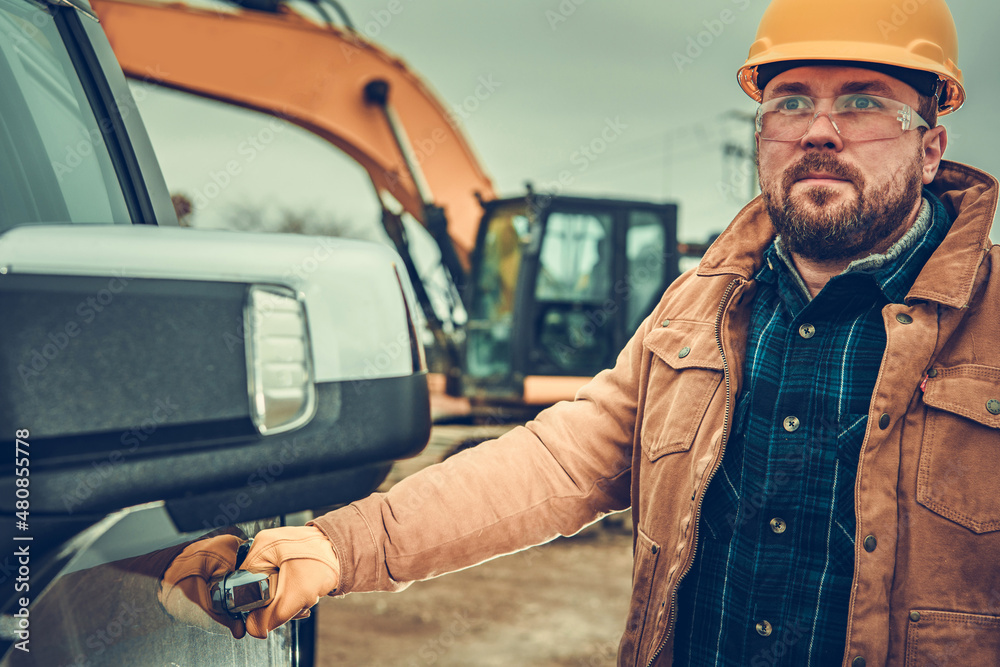 Ground Work Excavation Worker in Yellow Helmet and Safety Glasses