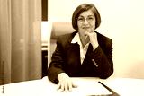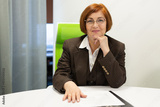 adult stylish woman aged in glasses at the table with documents