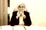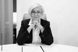 adult stylish woman aged in glasses at the table with documents
