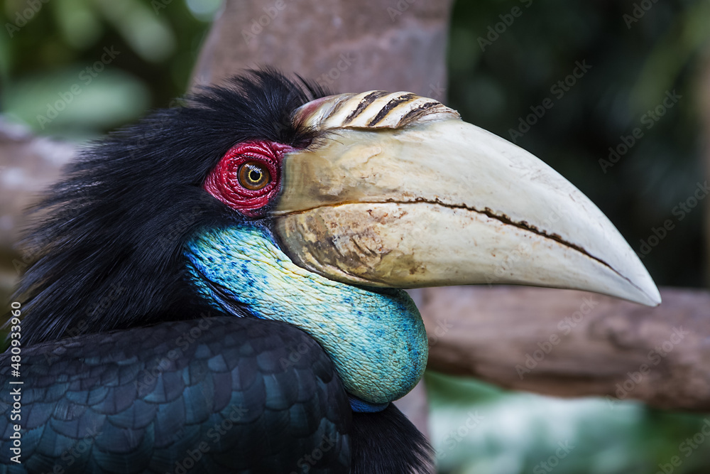 Portrait of a large hornbill. Close up in the wild. A colorful tropical bird native to Asia, Malaysian.
