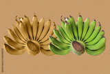 Closeup, Fresh banana bunch gold green color isolated pale warm brown background for design or stock photo illustration, sweet fruit, healthy food, fruits Chinese New Year