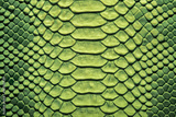 Beautiful green bright python skin, reptile skin texture, multicolored close-up as a background.