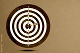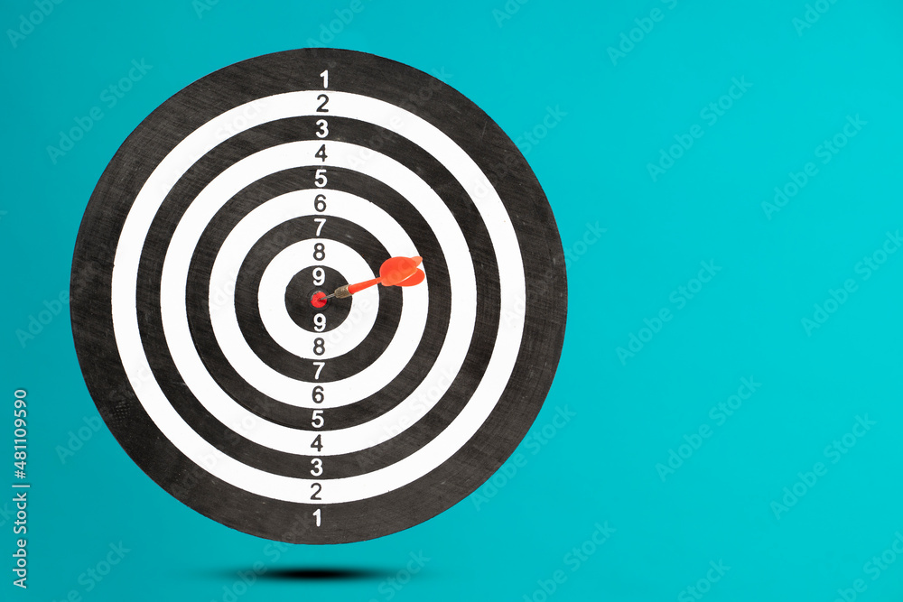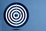 flying dart board isolated on blue background