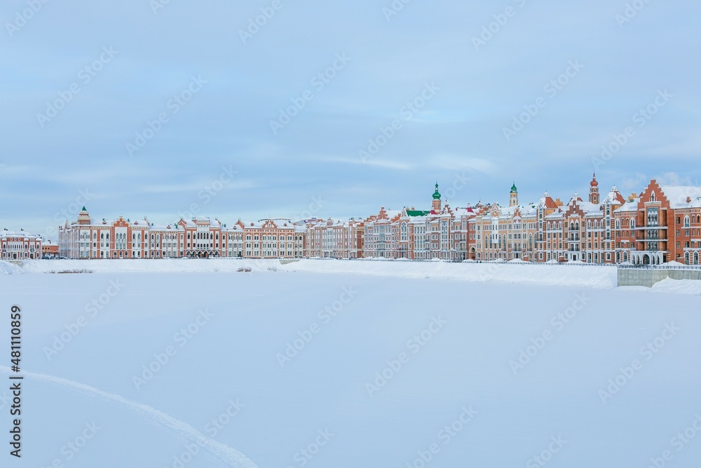 Scenic view of Russian town in winter
