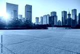 Empty square floor and city skyline with modern commercial office buildings in Shenzhen, China.