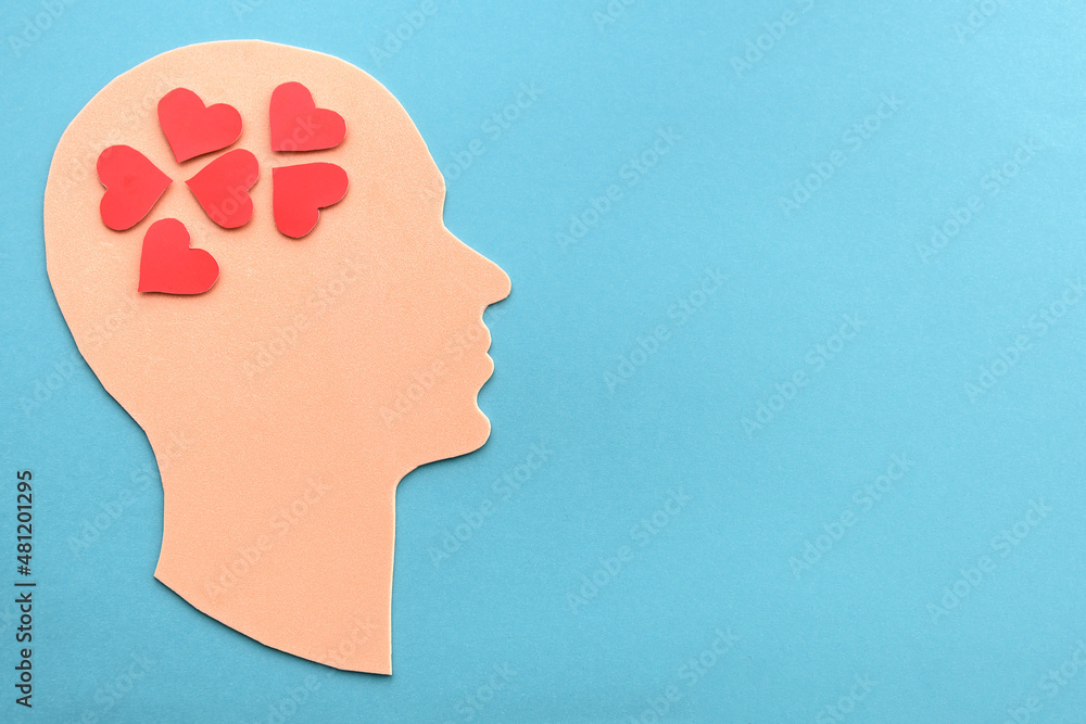 head of a man with red hearts in the brain