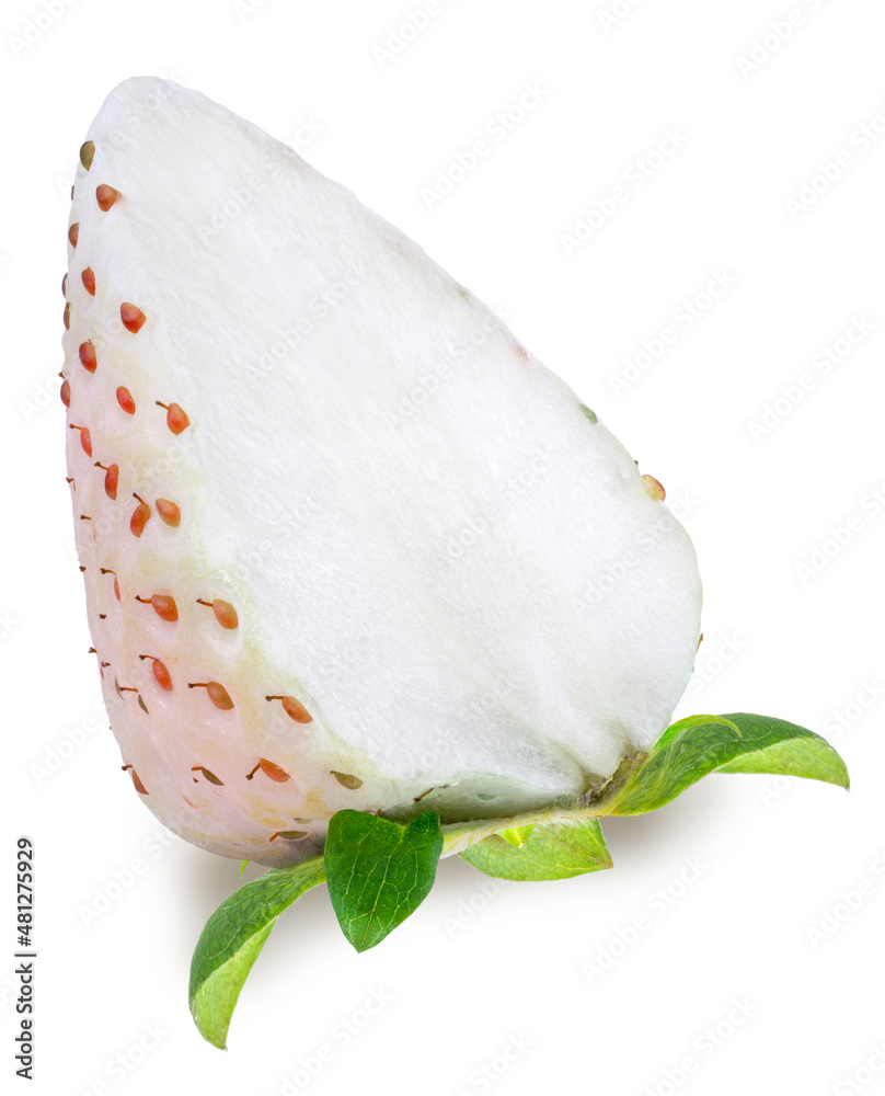 Fresh White strawberries in packaging isolated on white background, Pine berry or Hula strawberry on White Background With clipping path.