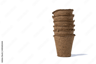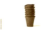 several empty peat pots for seedlings inserted one into the other isolated on a white background