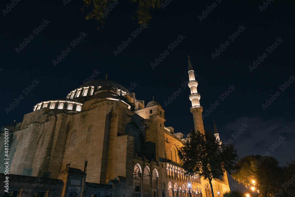 Kandil background photo. Suleymaniye Mosque at night in Istanbul.