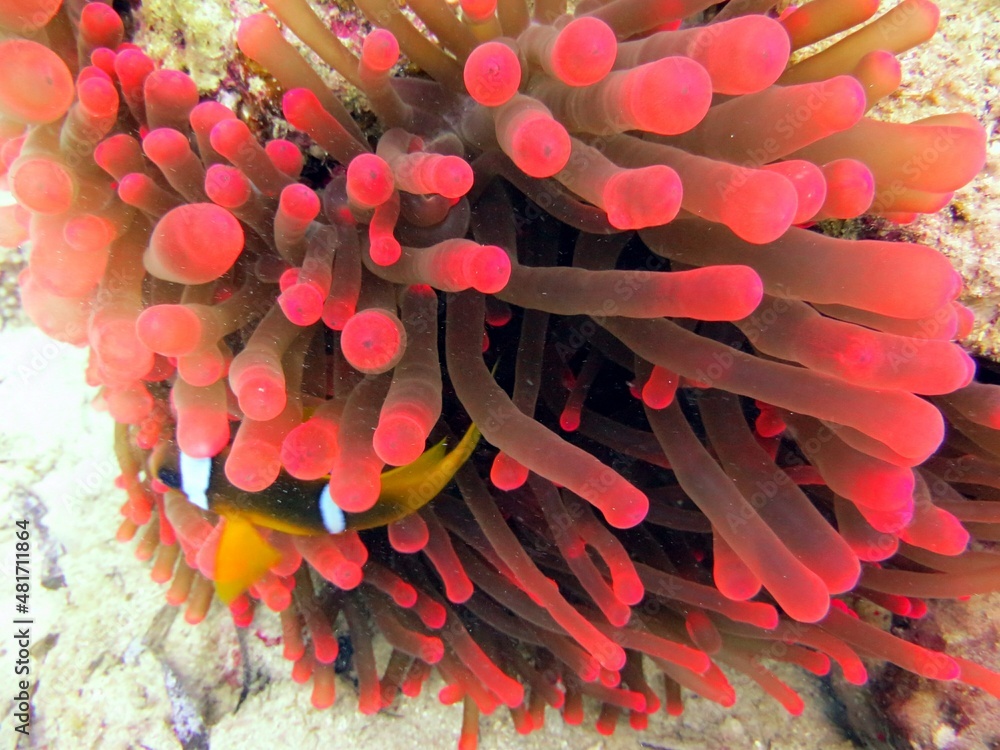 Clown fish with red anemone at the red sea