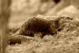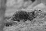 Eurasian otters (Lutra lutra) Quickly stalking along the banks of the river