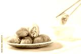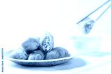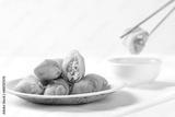 Asian deep fried spring roll filling with tofu, cabbage, carrot and glass noodle on natural plate eating with dipping sauce. Vegan food