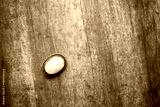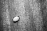 biała broszka na drewnianym stole