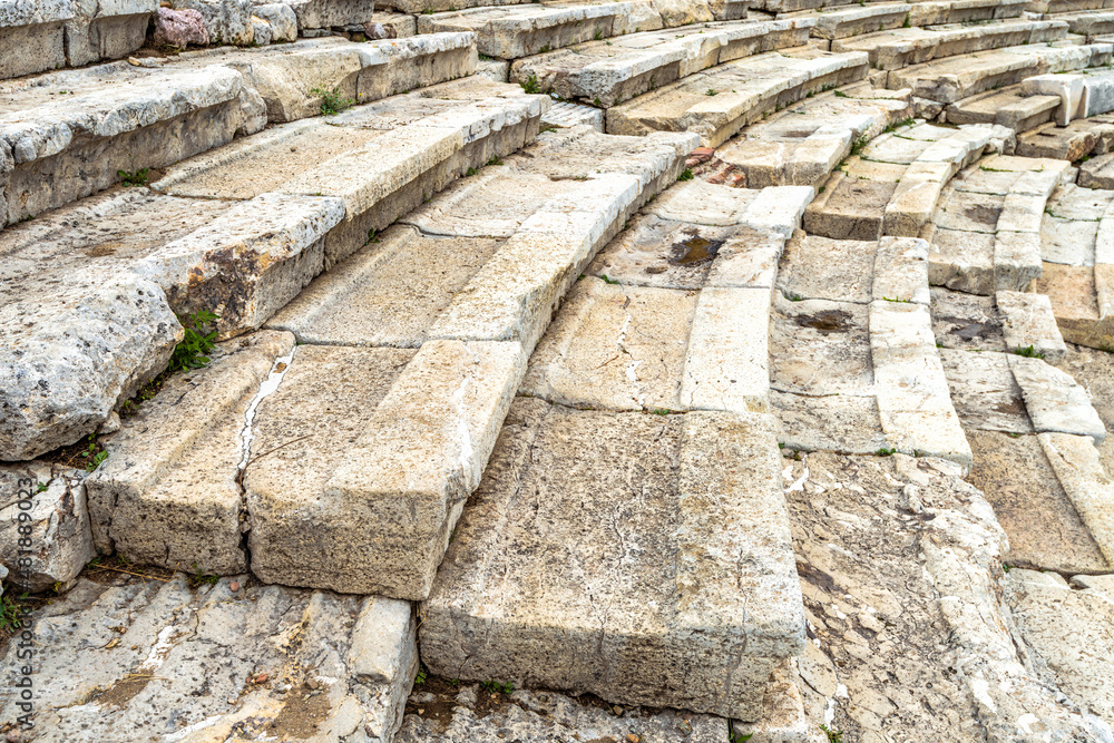 Stone seats of Theater of Dionysus at Acropolis foot, Athens, Greece
