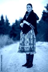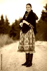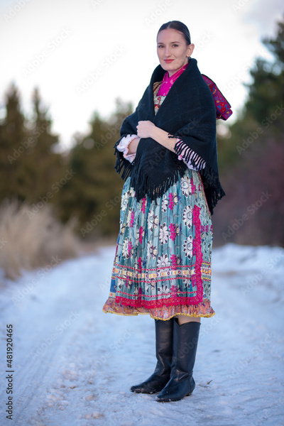 Young beautiful slovak woman in traditional dress. Slovak folklore