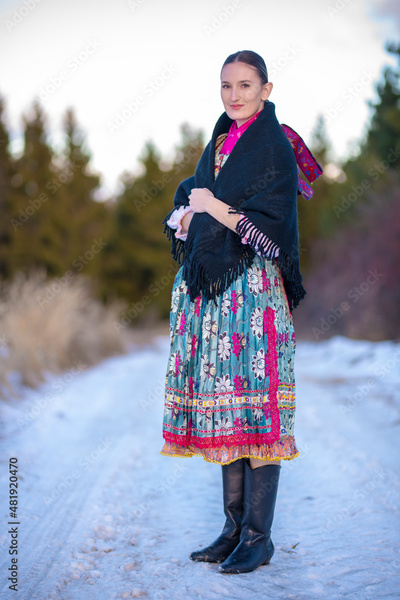 Young beautiful slovak woman in traditional dress. Slovak folklore