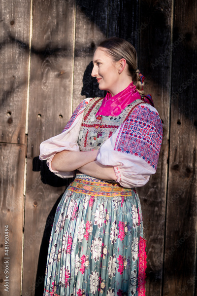 Young beautiful slovak woman in traditional dress. Slovak folklore
