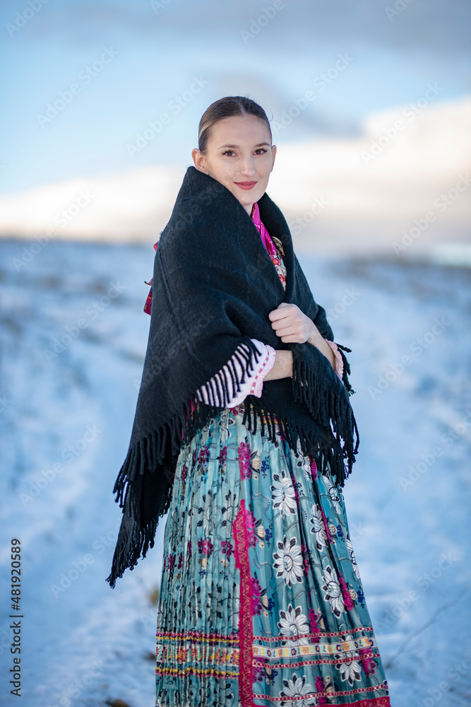 Young beautiful slovak woman in traditional dress. Slovak folklore