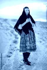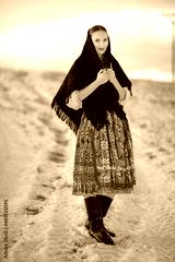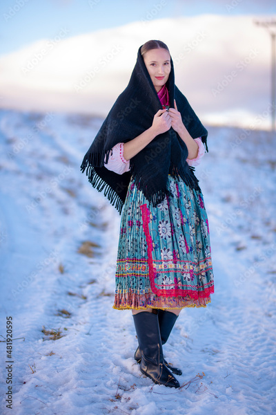 Young beautiful slovak woman in traditional dress. Slovak folklore