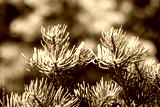 White Fir (Abies concolor) coniferous evergreen pine tree needles close-up on sunny blurry background. Natural spring green branches close view