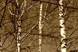 Spring bare birch trees leafless branches on scenic blue sky landscape. Natural trees woodland rural view